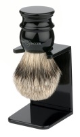 Edwin Jagger Faux Ebony handle, Silver Tip Badger handmade English shaving brush. This fabulous Edwin Jagger shaving brush is created in Sheffield, England combining cutting edge manufacturing technology and traditional hand craftsman skills using selected polyester material for the brush handle. A shaving brush hand filled with Silver Tip hair combined with quality shaving cream or soap will improve wet shaving results. Edwin Jagger Silver tip hair is the very softest, rarest and most luxurious quality, excellent for wet shavers with sensitive skin requiring gentle lathering and exfoliation performance. Natural Silver Tip is chosen for its ability to absorb hot water, transfer it to the face and soften the beard during the shave ensuring consistent results with either Edwin Jagger natural, paraben free shaving cream or shaving soap. Edwin Jagger shaving brushes come with a matching plastic drip stand as the company always recommend that, after daily use, shaving brushes are thoroughly rinsed in warm water and hung to dry. This brush comes packaged in an Edwin Jagger logo presentation box and is accompanied by care & wet shaving instructions to ensure longevity. A fabulous high quality gift.